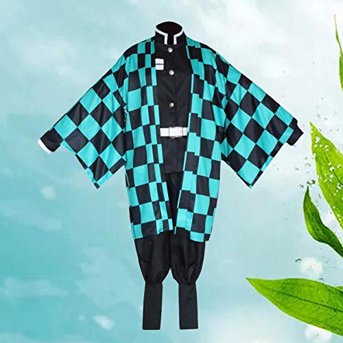 Specificaties: Anime Cosplay Kostuum, KIMETSU NO YAIBA, Demon Slayer, Kamado Tanjirou Cosplay Pak, Kimono + Top + Broek + Riem + Been…