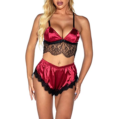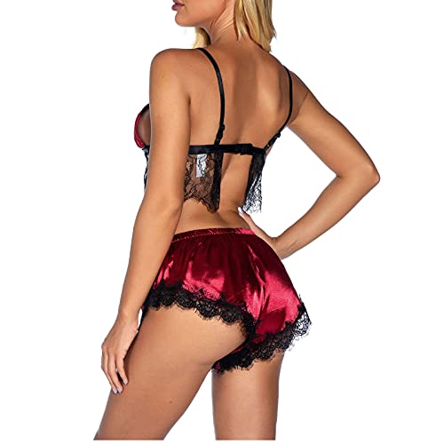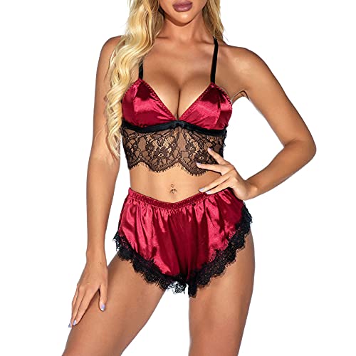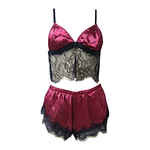 Dames Pyjama Set Sexy Kant Plus Size Spaghetti Strap Satijn Pyjama Cami Set 2 Stuk Korte Nachtkleding Dames Pyjama Sets…