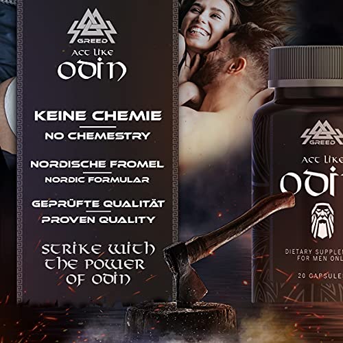 Act like Odin! Finally feeling good again. Bring impetus to your love life. Sometimes you just need a little support. Greed will help you with that. Naturally vegan and therefore suitable for all men – made in Germany and processed in Austria (natural active ingredient).
