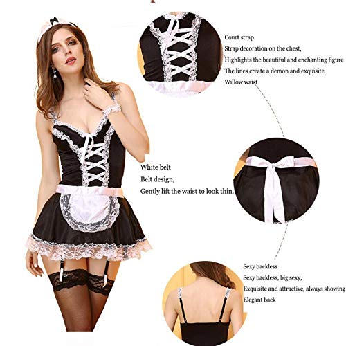Specificaties: JXLB Frans dienstmeisjeskostuum, uniform, dienstmeisjeskostuum, transparant kant, kostuum, schattig servies, meisjes…